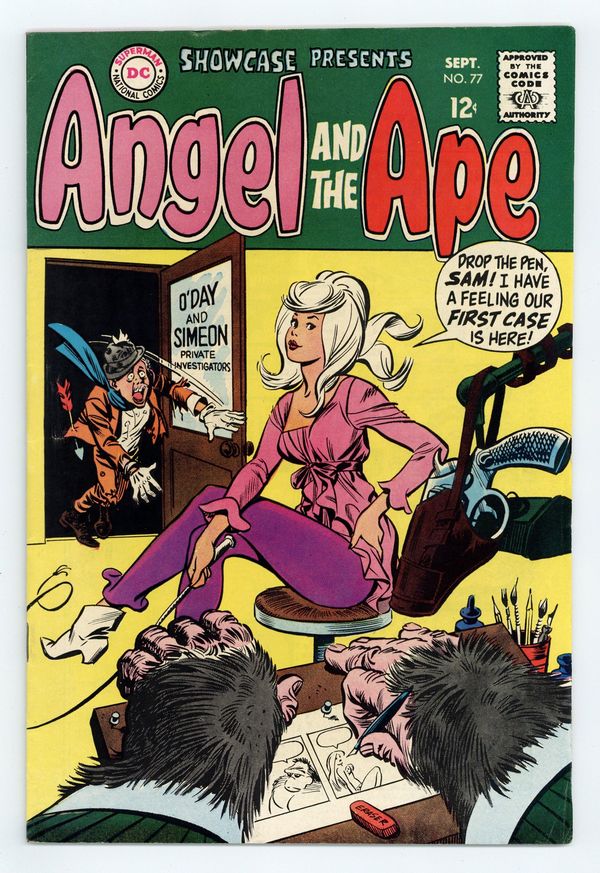 Cover pencils by Bob Oksner, cover idea by Sergio Aragones. 1st appearance of Angel and the Ape in Angel and the Ape, pencils by Bob Oksner, inks by Tex Blaisdell; Trumbull, with his leg in a cast, stumbles into O'DAY AND SIMEON, PRIVATE INVESTIGATORS; Angel is a crack PI and judo master; Sam is a gorilla who draws comic books; Sam delivers his latest art to Stan Bragg, publisher at BRAINPIX PUBLICATION, INC. Angel protects Trumbull from kidnapping, but they're nabbed; continues in Angel and the Ape #1. Ad for Lois Lane #86, an 80-Page Giant. Ad for Enemy Ace in Star Spangled War Stories. One-page "Wonderful World of Comics" text feature reviews Star-Studded Comics fanzine (the great publication by Larry Herndon and mycomocshop.com owner Buddy Saunders) and miscellaneous news. 36 Pages, Full Color. Cover price $0.12.