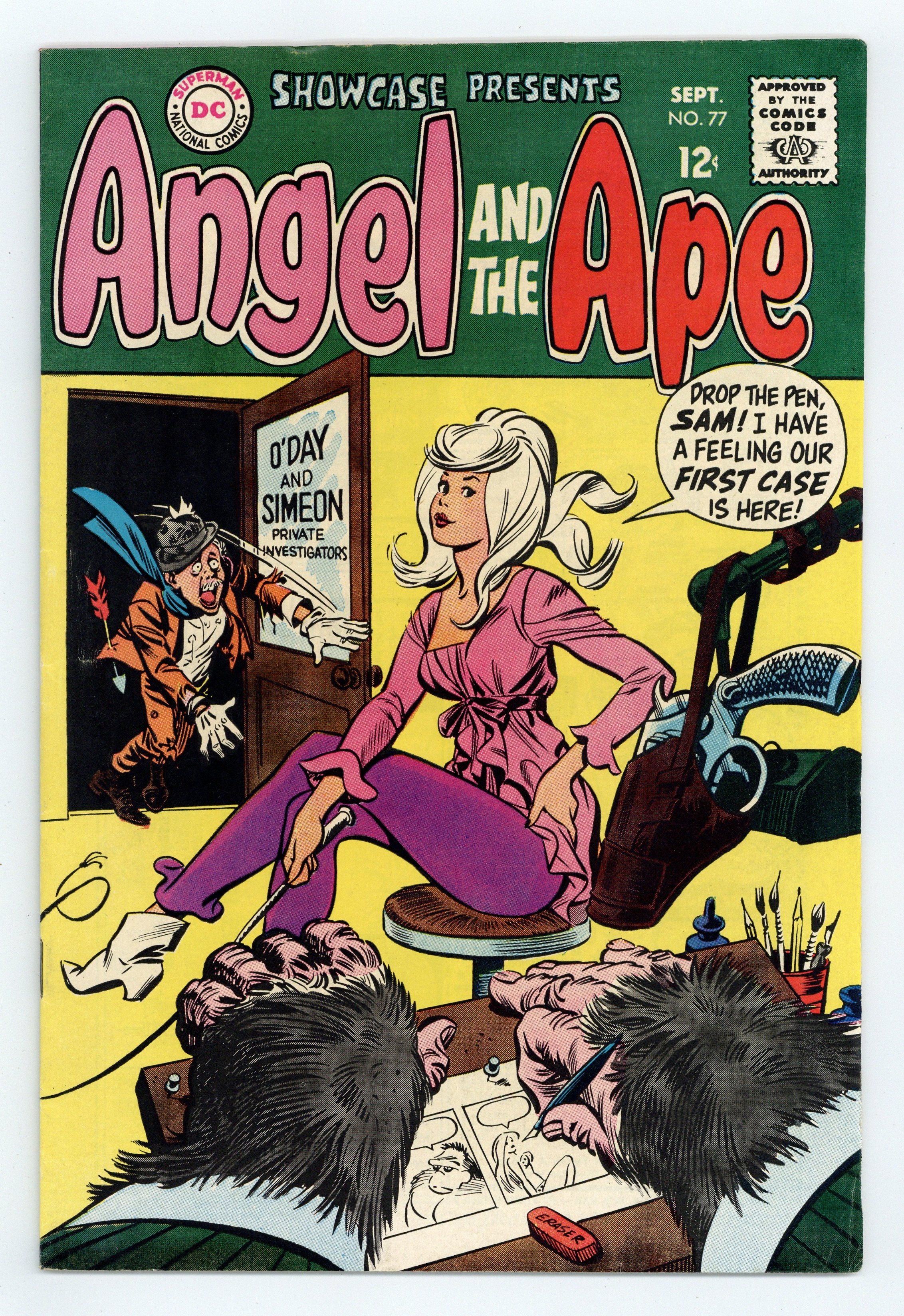 Tags: Anthology / Collection$45.00Cover pencils by Bob Oksner, cover idea by Sergio Aragones. 1st appearance of Angel and the Ape in Angel and the Ape, pencils by Bob Oksner, inks by Tex Blaisdell; Trumbull, with his leg in a cast, stumbles into O'DAY AND SIMEON, PRIVATE INVESTIGATORS; Angel is a crack PI and judo master; Sam is a gorilla who draws comic books; Sam delivers his latest art to Stan Bragg, publisher at BRAINPIX PUBLICATION, INC. Angel protects Trumbull from kidnapping, but they're nabbed; continues in Angel and the Ape #1. Ad for Lois Lane #86, an 80-Page Giant. Ad for Enemy Ace in Star Spangled War Stories. One-page "Wonderful World of Comics" text feature reviews Star-Studded Comics fanzine (the great publication by Larry Herndon and mycomocshop.com owner Buddy Saunders) and miscellaneous news. 36 Pages, Full Color. Cover price $0.12.