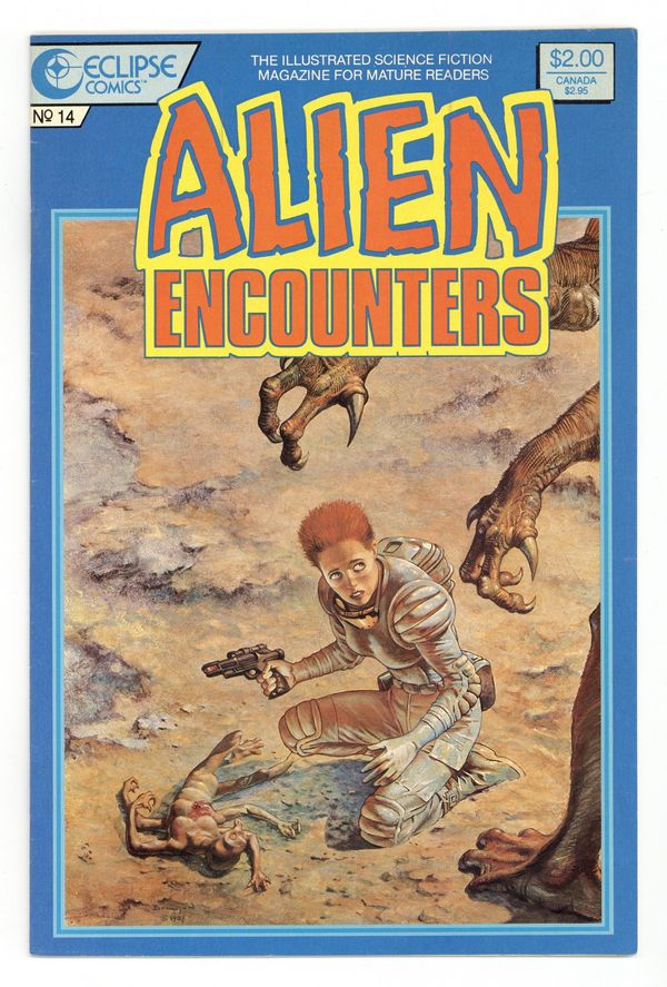$14.50Cover by John Bolton. Written by Jack Butterworth, Beppe Sabatini, Chuck Dixon and Eric Dinehart. Art by John Ridgway, Graham Nolan, Thomas Wimbish and Tom Lyle & Romeo Tanghal. The illustrated science fiction magazine for mature readers. In this issue: "The Buster Crabbe Collector" by Jack Butterworth and John Ridgway; "In Other News, Aliens Landed Today!" by Beppe Sabatini and Graham Nolan; "J.D.'s" by Chuck Dixon and Thomas Wimbish; and "Stillborn" by Eric Dinehart, Tom Lyle and Romeo Tanghal. 32 pages, full color. Mature Readers. Cover price $2.00.