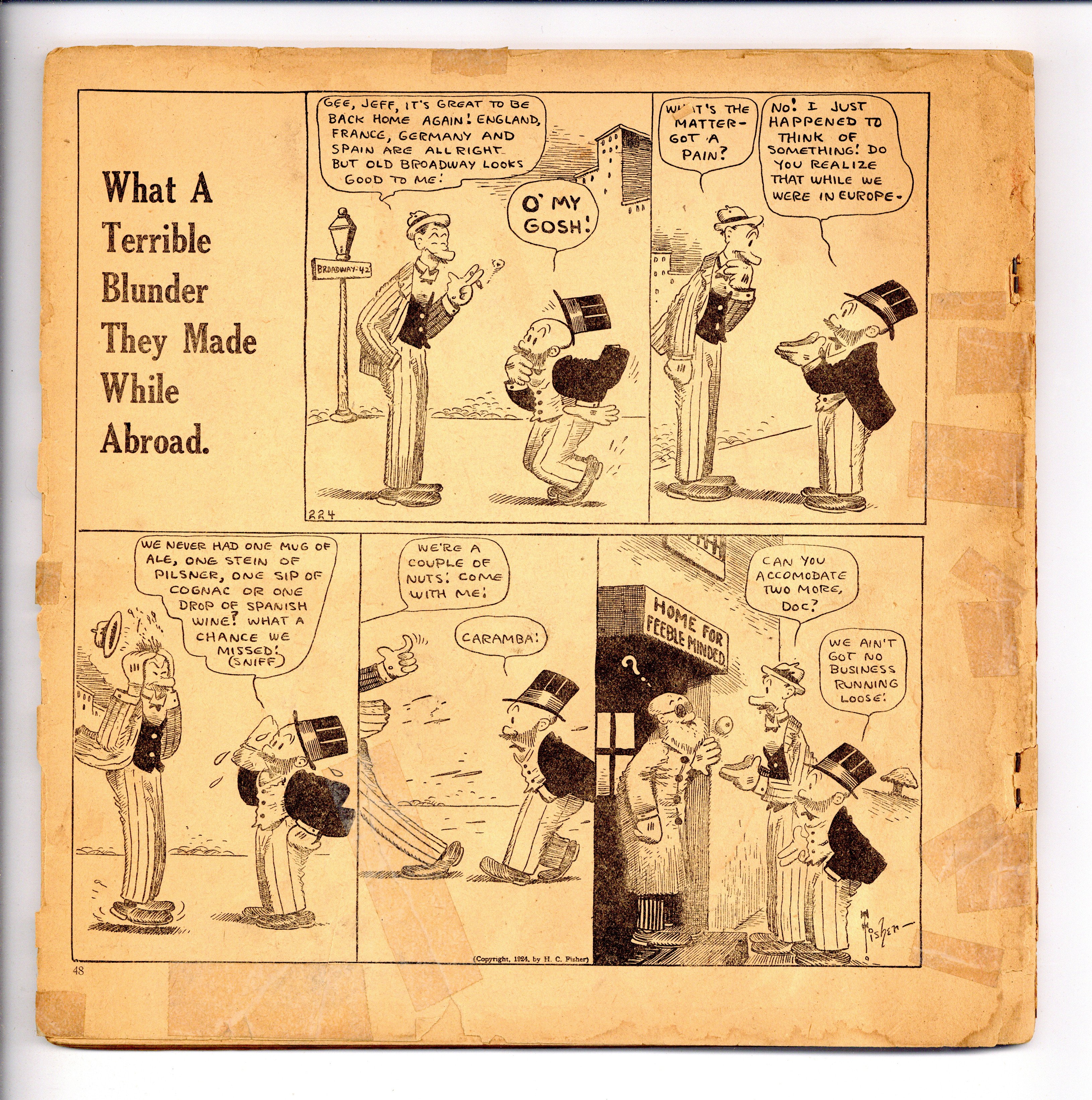 Publication date may be incorrect. Various issues in this series may have been reprinted several times, each with a new publication date along with different ad pages, and with the first printing publication date and later reprint date as yet unknown. Cupples & Leon Company, by Bud Fisher, stiff color cover, 9-1/2 x 9-1/2, 52 pages, B&W interior, strip reprints.