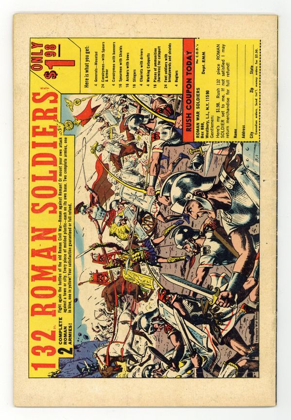 Cover pencils by Marie Severin, inks by Frank Giacoia. This Monster Unleashed!, script by Bill Everett and Roy Thomas, pencils by Marie Severin, inks by George Tuska; Prowling New York with Betty in his clutches, the Hulk transforms back into Banner just in time to be shot in the leg by a pair of thugs; The product of a nuclear test conducted by the U.S. and captured by the Chinese, the Missing Link is brought to New York and unleashed to wreak havoc; Of course, the dangerously radioactive monster crosses paths with the wounded Hulk and the two battle; Mr. Fantastic creates a Hulk-stopping weapon designed by Banner and Talbot takes the machine to hunt for the jade giant; Not realizing that he is fighting a dangerous foe, Talbot shoots the Hulk with the weapon turning him back into Banner just as the Missing Link begins another assault. House ad for the Spectacular Spider-Man #1, art by John Romita. 36 pgs. $0.12. Cover price $0.12.