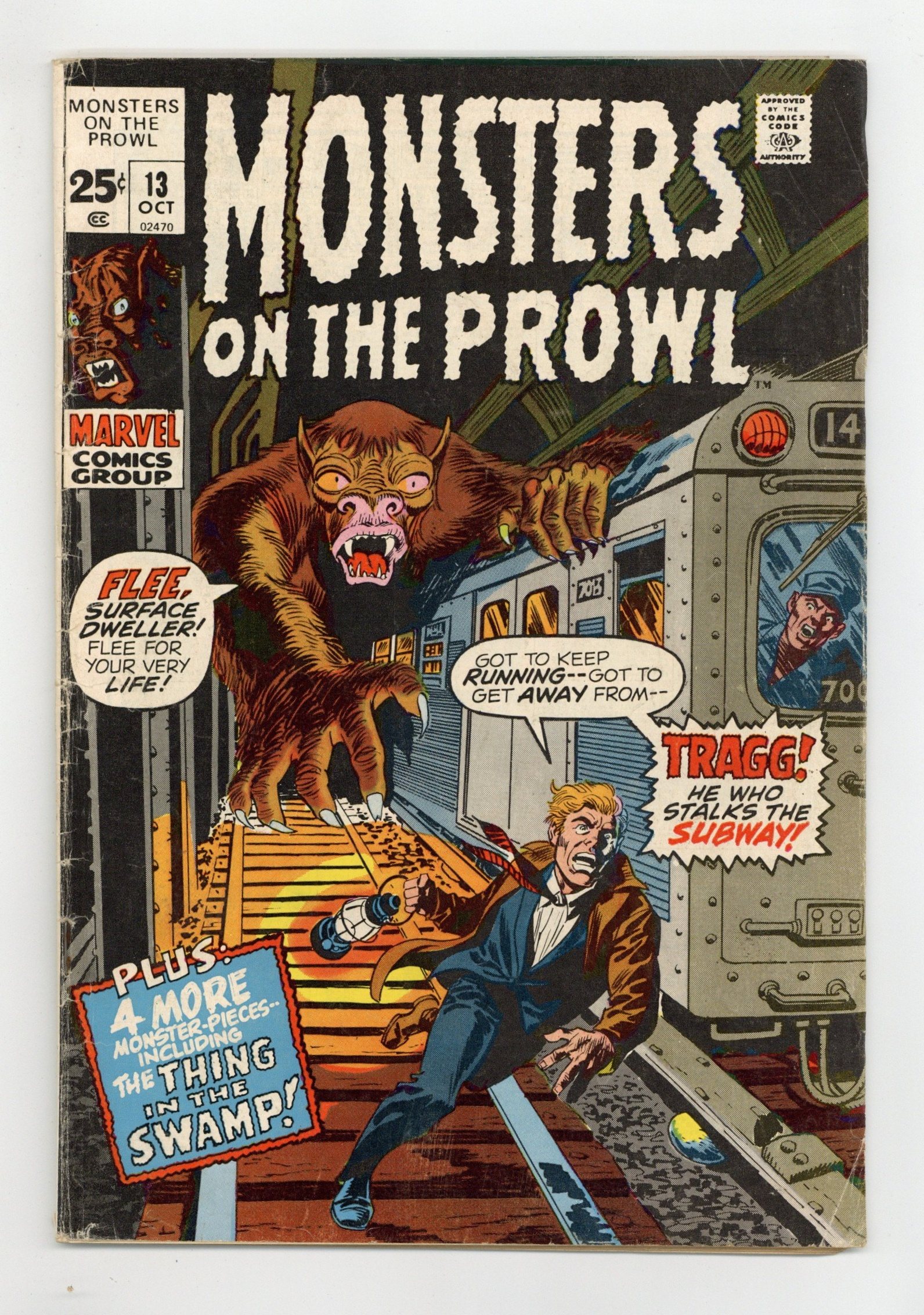 $17.25First 25-cent issue. Cover pencils by Marie Severin, inks by Frank Giacoia. The Sandman Cometh!, pencils by Jack Kirby, inks by Dick Ayers; A family stumbles across a hostile alien made of sand; The military are helpless, but it is defeated by the familys bookish son, who uses water to dissolve it and traps it in a bucket. I Dared Enter the Haunted Forest!, art by Don Heck; A bigoted rich man buys a cursed forest, unconcerned with the misfortunes that befall the village. It Fell From the Flying Saucer!, pencils by Jack Kirby, inks by Dick Ayers; An artist finds an alien pencil that will make whatever he draws real, but his selfish use of it makes the aliens take it back. The Thing From the Hidden Swamp, pencils by Jack Kirby, inks by Dick Ayers; A plain girl helps a stranded alien, and is made beautiful as a reward. In the Shadow of Tragg--He Who Walks Beneath the Earth!, script by Gerry Conway, art by Syd Shores; Reporter David Arnstead investigates the shut-down of a New York City subway line and finds Tragg, a subterranean monster that kills anything human it encounters. 52 pgs. $0.25. Cover price $0.25.