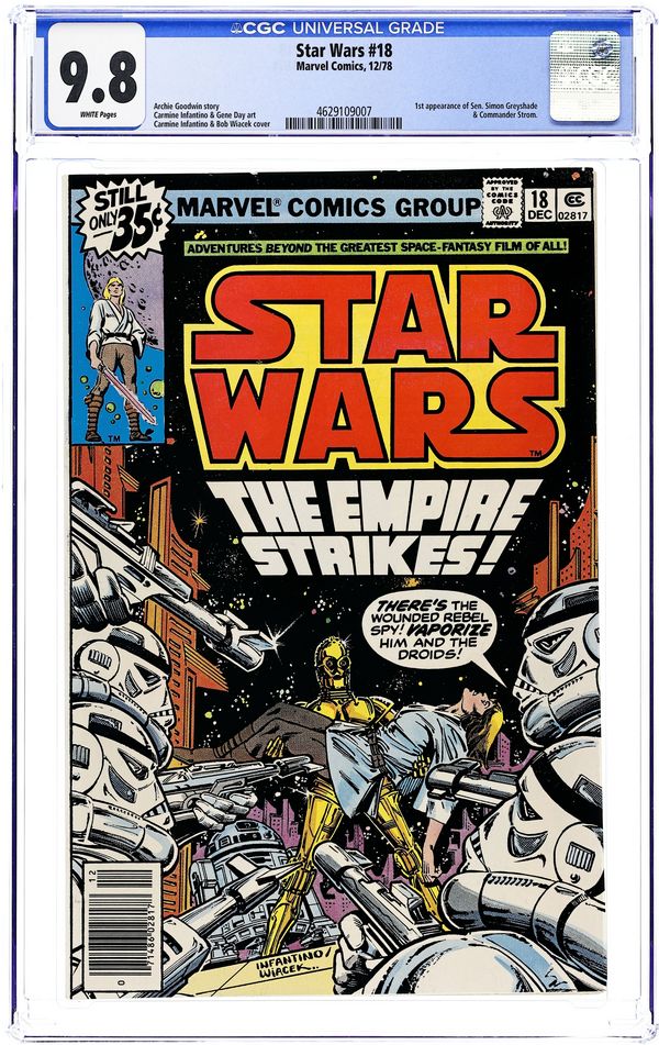 Tags: Star Wars$13.50"The Empire Strikes!" Written by Archie Goodwin. Art by Carmine Infantino and Gene Day. After the destruction of the Death Star, Luke, Han, Leia, and the rest have become the most wanted people in the galaxy. So you can imagine the Empire's delight when the crew of the Millennium Falcon seemingly falls right into their grasp. Cover price $0.35.