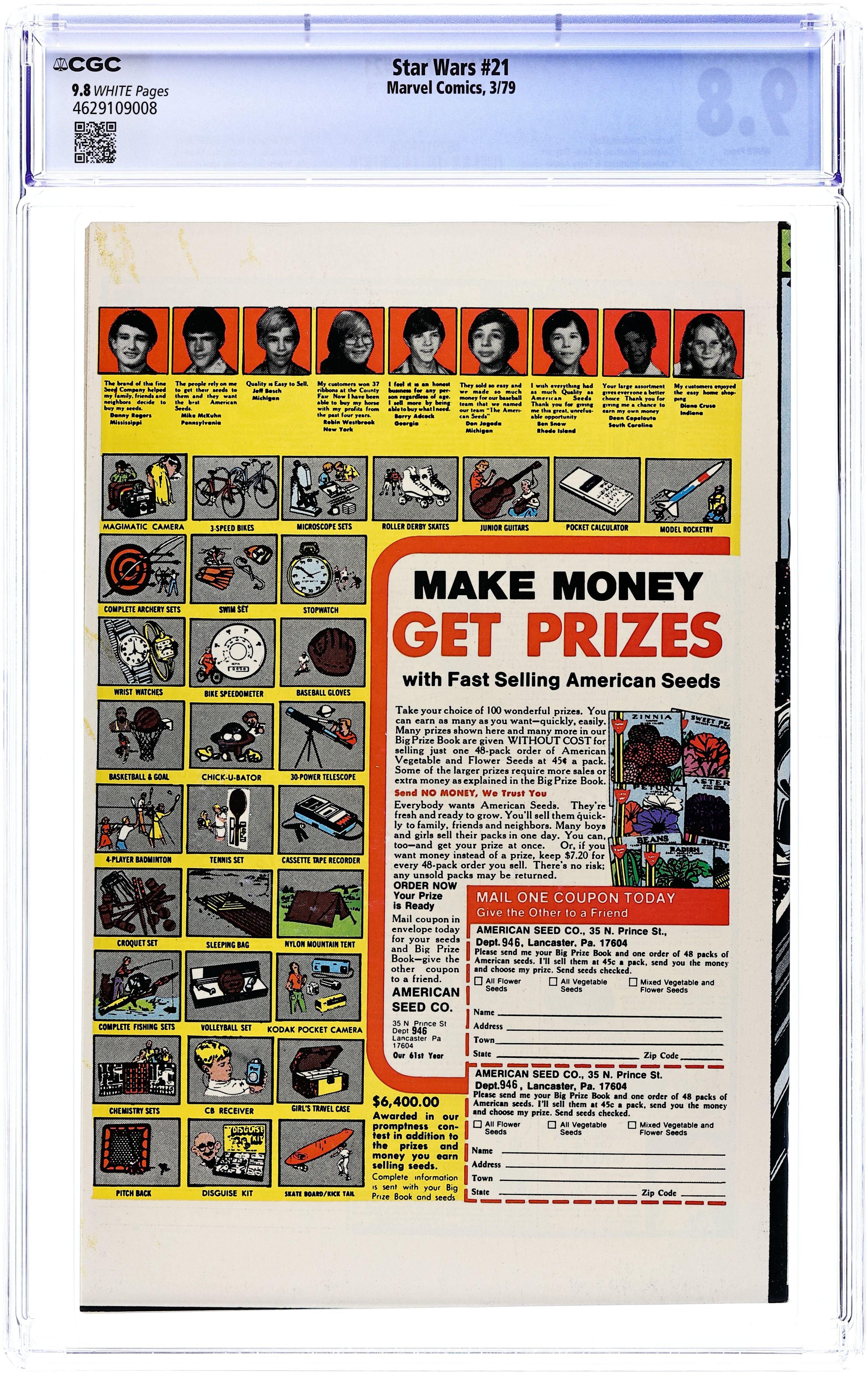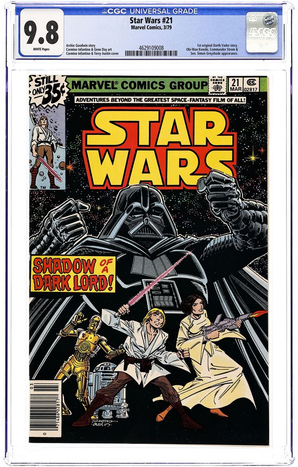 "Shadow of the Dark Lord!" Written by Archie Goodwin. Art by Carmine Infantino and Gene Day. In the realm of the mind Luke Skywalker overcomes one of his greatest challenges to date. Meanwhile, the dark lord, Darth Vader, continues to scour the galaxy for the Rebels that continue to elude his vengeance. Cover price $0.35.
