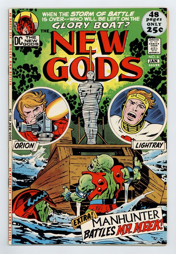 Cover pencils by Jack Kirby, inks by Vince Colletta. The Glory Boat!!, script and pencils by Jack Kirby, inks by Mike Royer; Lightray and Orion battle the Deep Six while Farley and Richard Sheridan learn more about each other's views. Beware of Mr. Meek!, script and art by Joe Simon and Jack Kirby. Letter from comics writer Bob Rozakis. The Rocket Lanes of Tomorrow, script and art by Joe Simon and Jack Kirby. 52 pgs. $0.25. Cover price $0.25.
