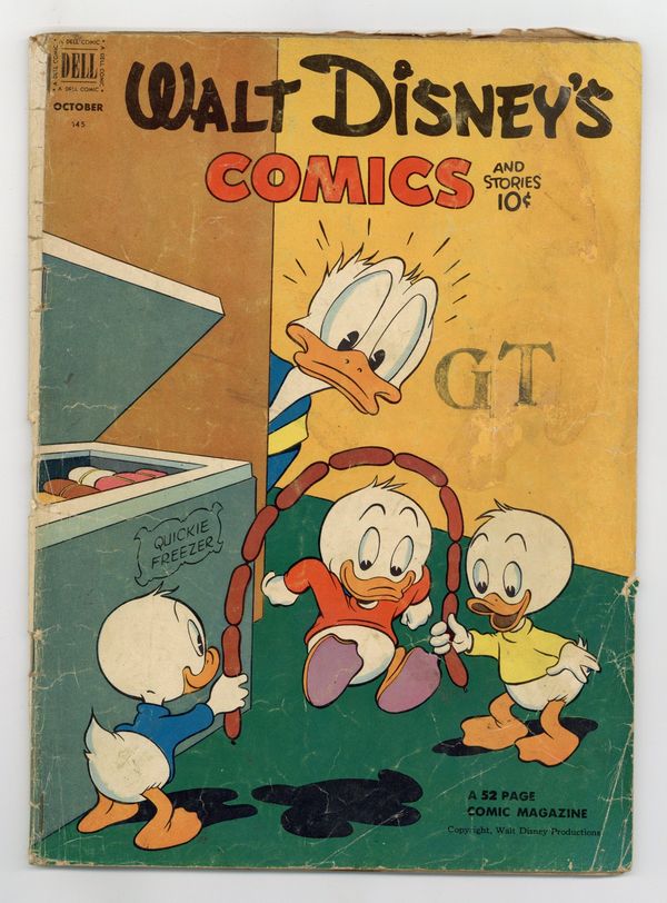 Tags: Disney Ducks & MicePublished Oct 1952 by Dell/Gold Key.$9.00- 1" spine split. Cover oxidation. Staples added (not manufacturing). Water damage.