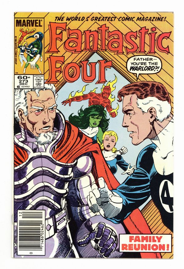 Tags: Fantastic Four$5.30Direct Edition. "Fathers and Others!" Part 3 of 3. Guest-starring Wyatt Wingfoot. Story, art, and cover by John Byrne. While on an alternate Earth Reed runs into the last person he ever expected to see again...his father, Nathaniel Richards (1st full appearance)! 36 pgs. Cover price $0.60.