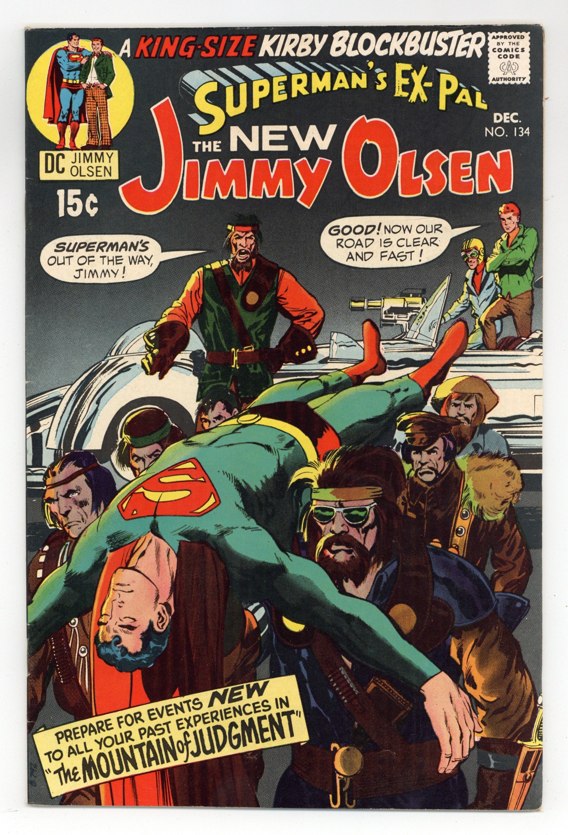 1st appearance of Darkseid (cameo). Cover art by Neal Adams. The Mountain of Judgement!, script by Jack Kirby, pencils by Jack Kirby and Al Plastino (some Superman heads), inks by Vince Colletta; Superman defuses a bomb that was intended to destroy the Hairies, Jimmy, and the Newsboys. The Whiz Wagons Are Coming!, script by Jack Kirby, pencils by Jack Kirby, inks by Vince Colletta. 36 Pages, Full Color. Cover price $0.15.