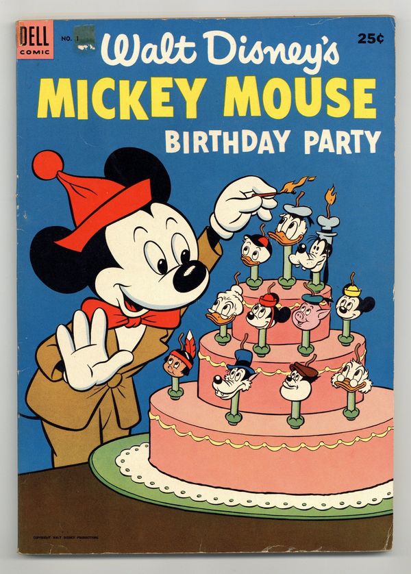 Tags: Dell Giant, Disney Ducks & Mice$35.00Reprints entire 48 pages of Gottfredson's "Mickey Mouse in Love Trouble" from Walt Disneys Comics and Stories 36-39. Quality equal to original. Also reprints one story each from Four Color 27,29, and 181 plus 6 panels of highlights in the career of Mickey Mouse. 100 Pages. Cover price $0.25.