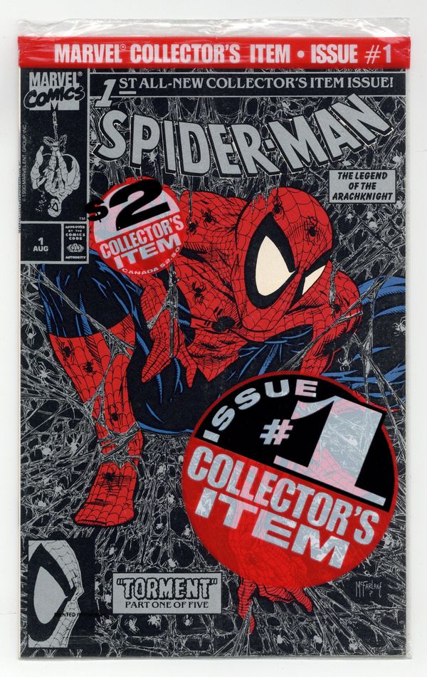 Tags: Spider-ManSpider-Man (1990 Marvel) 1SILVERP NM 9.4 McFarlane Polybagged Silver No Print Price Variant