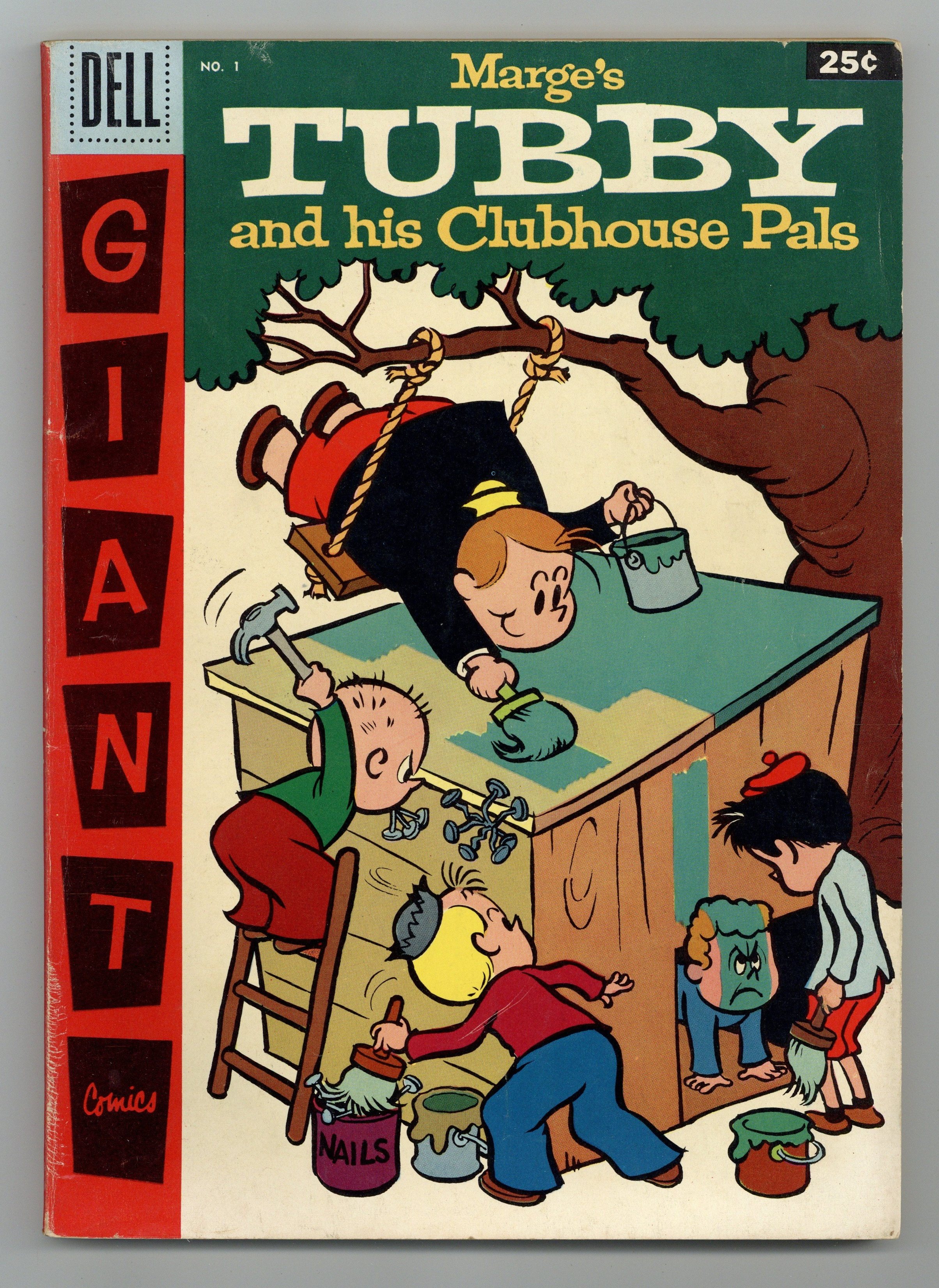 Tags: Dell Giant$12.501st appearances of Gran'pa Feeb and Janie. Script by John Stanley, art by Tripp. Stories include "The Flying Fisherman," "Injun Fighters," "Zoodunit," "Gran'pa Feeb's Treasure Chest," "Violin Rash," "Money-Sitter," "The Mystery Challenger," "To the Rescue," and "The Frogboy." 100 Pages, Full Color. Cover price $0.25.