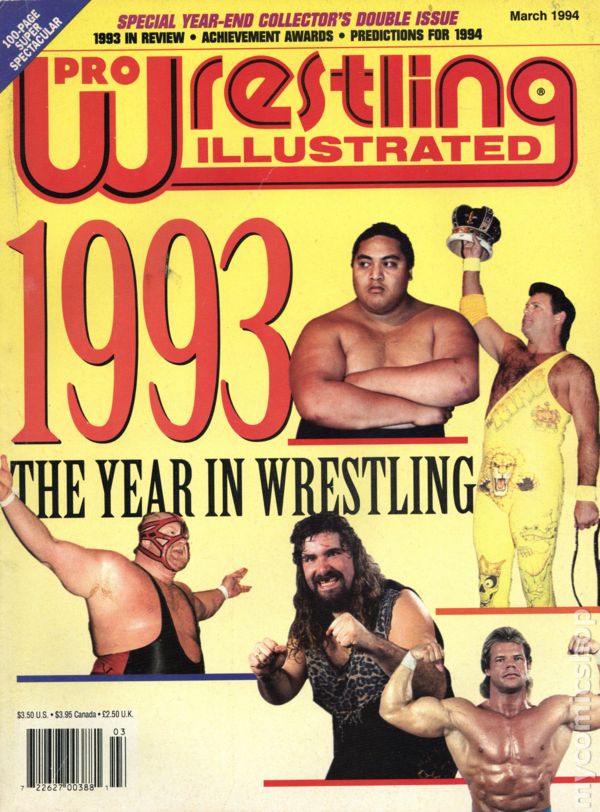 A look back on 1993's events in wrestling. Yokozuna, Jerry Lawler, Vader, Cactus Jack, Lex Luger cover. Cover price $3.50.