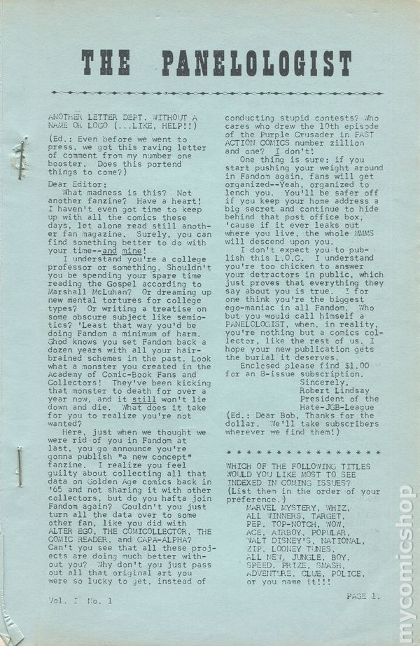 Panelologist (1966 Jerry G. Bails) Fanzine comic books