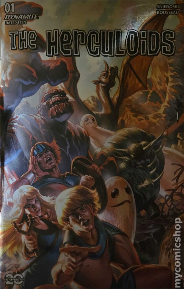 Written by Tom Sniegoski. Art by Craig Rousseau. Cover by Rob Liefeld. Hidden in the furthest reaches of space, the planet of Amzot is legendary for its fabled riches - and for the terrible fates that befall anybody who seeks to exploit them… Those who survive their encounters tell blood-chilling tales of horrific, imposing monsters that guard the mysterious world - yet the lure of its abundant resources is too great to resist. Raiders and pirates continue to come from across the galaxy, and there is only one force strong enough to stop their constant attacks - The Herculoids! But as strong as these defenders are, a recent battle may have pushed Amzot to its limits - and awakened a sleeping darkness within the planet itself! 32 pages, full color. Rated T Cover price $29.99.