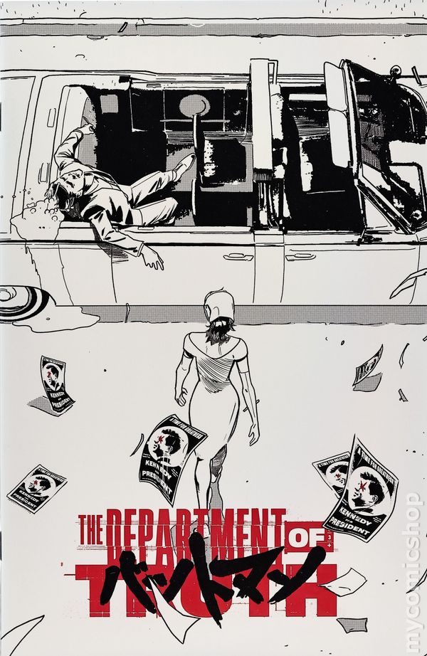 Captured Collectibles and No Masss Comics New York Comic Con Exclusive B&W Sketch Cover by Javier Fernandez. Written by James Tynion IV, Scott Snyder. Art by Martin Simmonds, Joshua Hixson. THE DEPARTMENT OF TRUTH Celebrates its 5th Anniversary with an Extra-length #0 Issue! A new day has dawned at the Department of Truth. Lee Harvey Oswald and his ruthless new recruits are ready to do whatever it takes to make the agency great again. Dont miss this critical turning point in the Eisner-nominated series! And—for the first time ever—DoT welcomes celebrated guest writer SCOTT SNYDER (Absolute Batman) and acclaimed artist JOSHUA HIXSON (THE DEVIANT) to tell the secret history of Elvis in the first of a three-part back-up story! 40 pages, full color, rated M. Cover price $4.99.