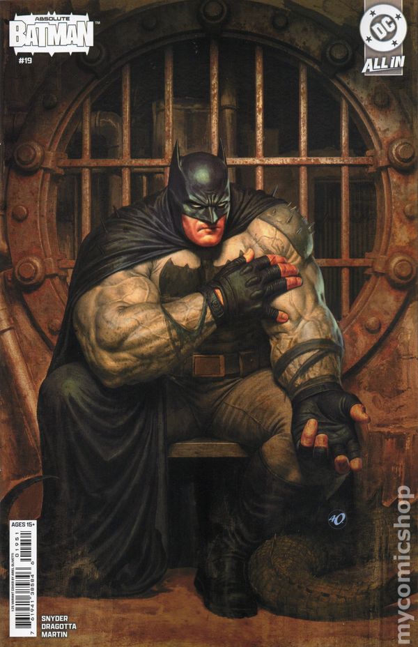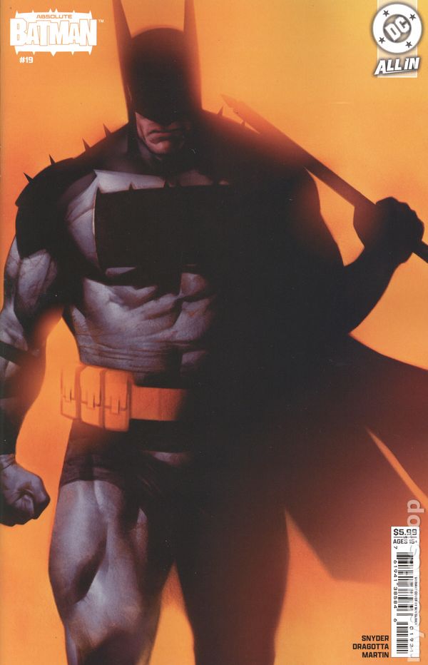 Limited 1 for 25 Retailer Incentive Variant Cover. (W) Scott Snyder (A) Nick Dragotta (CA) Ariel Olivetti ABSOLUTE SCARECROW EMERGES FROM THE SHADOWS OF ARK M AS A NEW STORY ARC BEGINS... Poison Ivy proved to be just one of the many horrors within the bowels of the ARK M facility, and as Joker sets his sights on Absolute Batman, he decides to enlist the help of one of the center's most terrifying doctors, Dr. Jonathan Crane. While Bruce Wayne tries to align himself with Barbara Gordon, there's more than one alliance formed in this issue. New debuts, new villains, new arc starts here. Cover price $5.99.