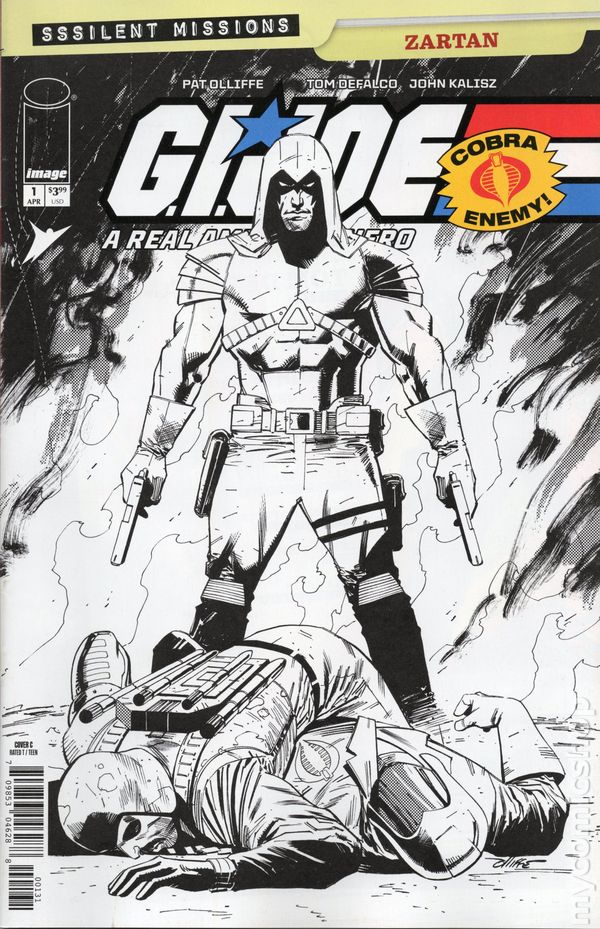 (W) Tom DeFalco (A) Pat Olliffe (CA) Pat Olliffe SUPERSTAR CREATORS PRESENT UNFORGETTABLE ALL-NEW COBRA SILENT MISSIONS The face of comic books changed forever when G.I. JOE: A REAL AMERICAN HERO #21 introduced fans to the “Silent Interlude”, an action-packed story with NO DIALOGUE. Now, Cobra finally gets their turn in the ssspotlight! Iconic Spider-Man creators PAT OLLIFFE and TOM DEFALCO trap Zartan in his deadliest undercover mission yet. But for the master of disguise, outmaneuvering both Cobra and G.I. Joe’s not a bad day’s work… Cover price $3.99.
