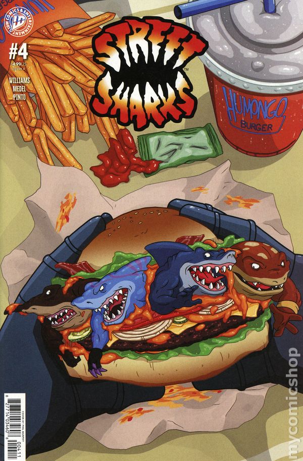 (W) Stephanie Williams (A) Ariel Medel (CA) Vincenzo Federici Theres a new burger chain in Fission City, and no one is happier than the Street Sharks! But when the success of the new Mega Burgers threatens the Sharks favorite restaurant, Humongo Burger, that becomes a problem. And when their enhanced senses detect something fishy about Mega Burgers food, the Sharks know that Dr. Paradigm is involved. Could this be another ploy to turn the citys populace into gene-slammed monsters? Probably! 32 pages, full color, not rated. Cover price $4.99.