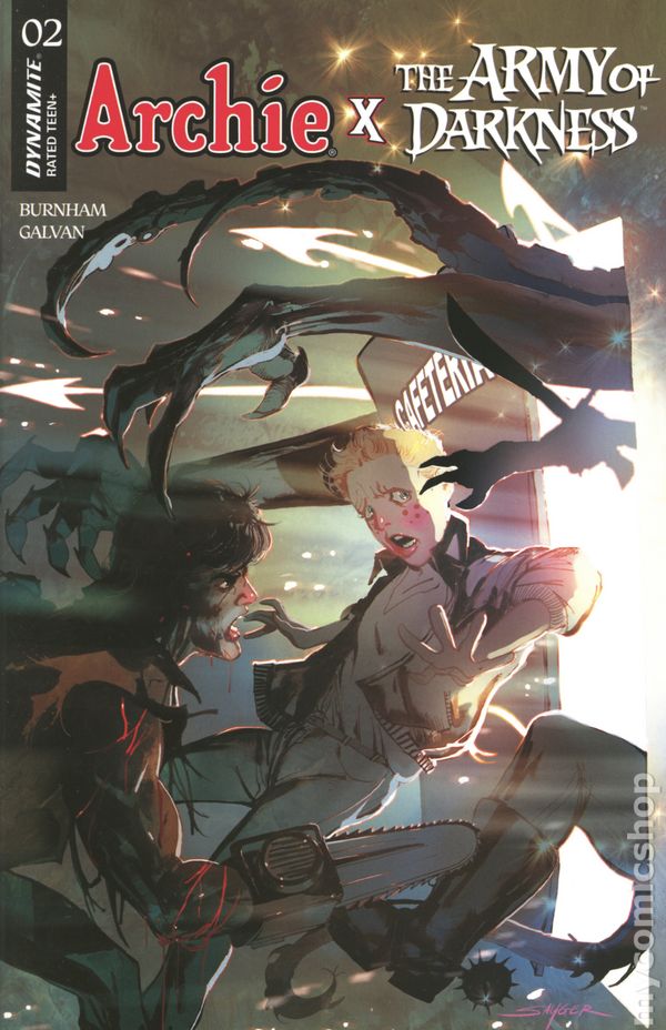 (W) Erik Burnham (A) Bill Galvan (CA) Stuart Sayger ITS A DEADITE PARTY! Reggies lake house soirée was supposed to be the social event of the season, but now it may prove to be the town of Riverdales swan song! Following Archie Andrewss unwitting awakening of the Army of Darkness, chaos — in the form of an undead horde — has descended upon the shore. With slavering evil literally at their doorstep, the gang has only one hope of making it out alive — the Savior of S-Mart, one Ashley J. Williams. Unluckily for them, the Chosen Ones car currently has four flat tires! Amateur mechanics ERIK BURNHAM and BILL GALVAN pop the hood and supercharge the adventure in Archie X Army of Darkness #2 — featuring nitrous-boosted covers from GALVAN, FRANCESCO FRANCAVILLA, LAURA BRAGA, CRAIG CERMAK, and STUART SAYGER! 32 pages, full color, rated T+. Cover price $4.99.