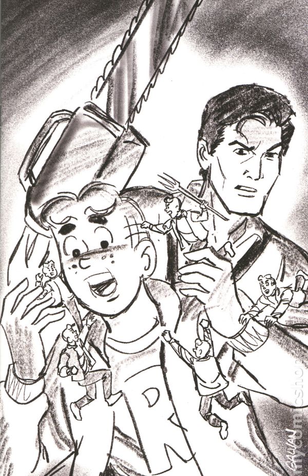 Limited 1 for 15 Retailer Incentive Variant Cover. (W) Erik Burnham (A) Bill Galvan (CA) Bill Galvan ITS A DEADITE PARTY! Reggies lake house soirée was supposed to be the social event of the season, but now it may prove to be the town of Riverdales swan song! Following Archie Andrewss unwitting awakening of the Army of Darkness, chaos — in the form of an undead horde — has descended upon the shore. With slavering evil literally at their doorstep, the gang has only one hope of making it out alive — the Savior of S-Mart, one Ashley J. Williams. Unluckily for them, the Chosen Ones car currently has four flat tires! 32 pages, full color, rated T+. Cover price $4.99.