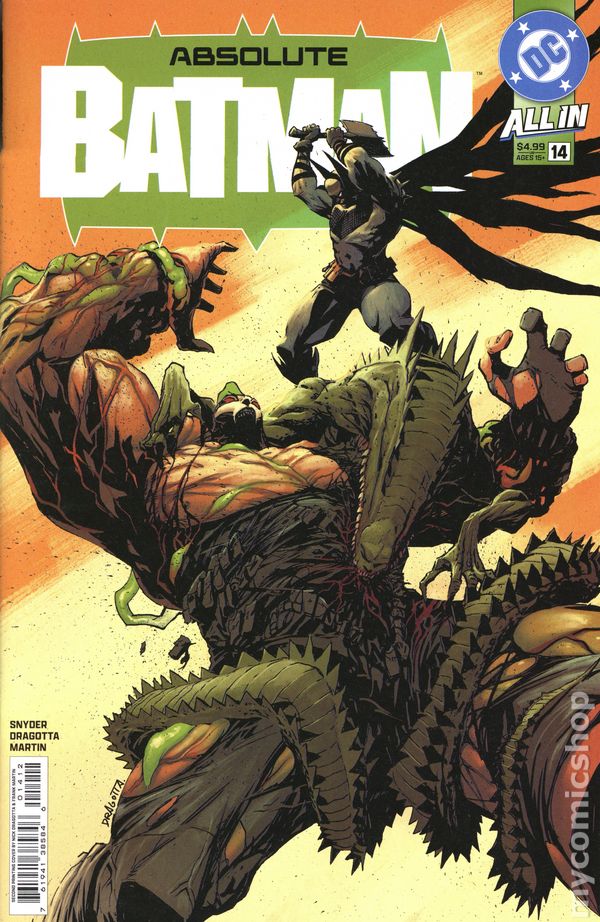 2nd Printing, Cover A. (W) Scott Snyder (A) Jock (CA) Nick Dragotta SCOTT SNYDER REUNITES WITH LEGENDARY ARTIST JOCK! Alfred reveals to Bruce the story of the man hes been chasing for years. Enter: Joker! Scott Snyder and Jock reunite for an epic tale in the Absolute Universe! 32 pages, full color, rated 15+. Cover price $4.99.