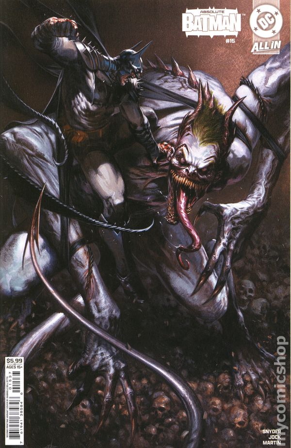 2nd Printing, Cover D. Foil Cover. (W) Scott Snyder (A) Jock (CA) Jock SCOTT SNYDER REUNITES WITH LEGENDARY ARTIST JOCK! Alfred reveals to Bruce the story of the man hes been chasing for years. Enter: Joker! Scott Snyder and Jock reunite for an epic tale in the Absolute Universe! 32 pages, full color, rated 15+. Cover price $7.99.