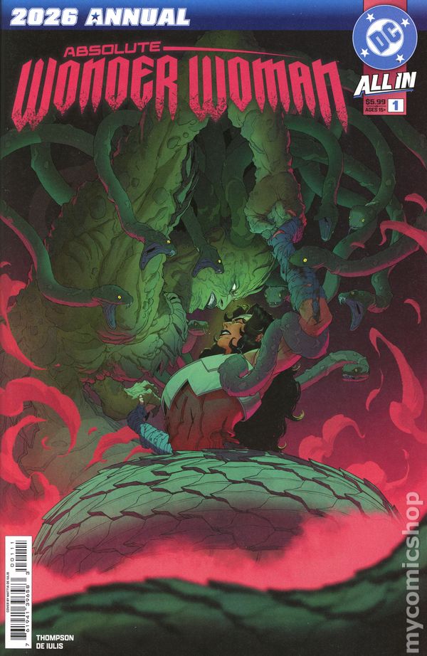 (W) Kelly Thompson (A) Mattia De Iulis (CA) Haining THE FIRST ABSOLUTE WONDER WOMAN ANNUAL IS HERE! The experience of briefly becoming Medusa in order to save Gateway City changed Diana. It haunts her, and she has never stopped seeking an answer from the gods. Her pleas to Athena have gone unanswered...until now. If she wants justice, the mission is deadly and uncertain. Is it worth the risk just to set right one injustice? Breakout artist Mattia de Iulis returns to the series for a visually spectacular epic of mythological crimes and personal redemption! 48 pages, full color, rated 15+. Cover price $6.99.The listings below are from eBay, and MyComicShop is not responsible for these items in any way. Some listings shown here may no longer be available if they sold or were ended by the seller after we last retrieved the listing details.