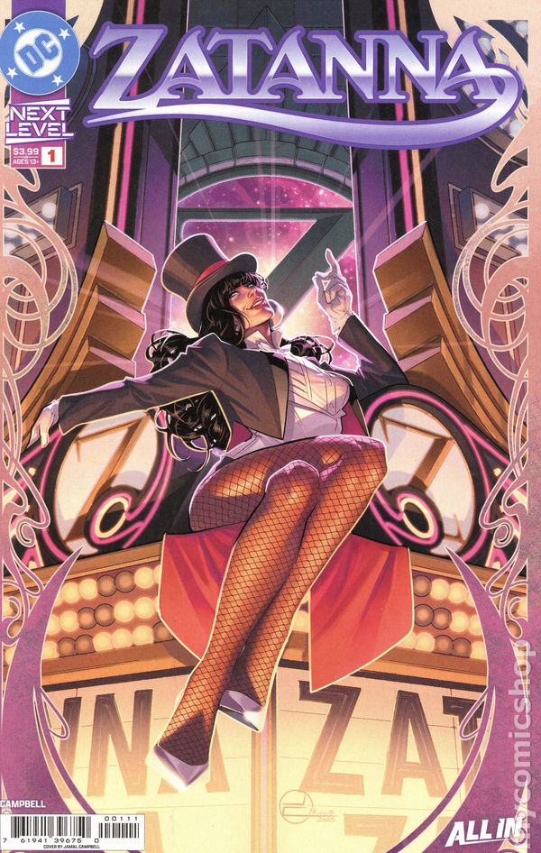 (W) Jamal Campbell (A) Jamal Campbell (CA) Jamal Campbell SUPERSTAR JAMAL CAMPBELL TAKES ZATANNA'S MAGIC TO THE NEXT LEVEL! Zatanna Zatara embarks on her greatest tour yet! As the newest and first Prime Magus in millennia, it is now Zatanna's sworn responsibility to oversee and guide the world of magic. All eyes are on her. How will she accomplish this grand task? How will she shoulder this heaviest of responsibilities? How will she confront the horrors waiting in forgotten histories? With a wink, a flourish, and a whole lot of magic! All-star writer/artist Jamal Campbell (Superman, Zatanna: Its Showtime) is back for an encore with the mistress of magic as she finally gets her own ongoing series! 32 pages, full color, rated 13+. Cover price $3.99.