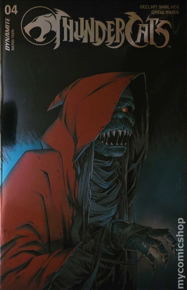 Written by Declan Shalvey. Art by Drew Moss. Cover by Declan Shalvey. Fleeing through space to escape their dying home world, the ThunderCats were attacked en route by their mortal enemies, the Mutants of Plun-Darr. After diverting their damaged flagship to a planet called Third Earth, the surviving ThunderCats now strive to rebuild their society in harmony with the new world's natives. But the Mutants, determined to possess the ThunderCats' mystical gem, the Eye of Thundera, have tracked them down - and they've also forged an alliance with Mumm-Ra, the devil-priest of Third Earth! Now the ThunderCats, led by an inexperienced Lion-O, must band together as never before to protect their legacy from this combined enemy. But will they be able to withstand the onslaught of Mumm-Ra the Ever-Living, once he sets his eyes upon them? The triple-threat talents (writers, artists, and ThunderCats superfans) of DECLAN SHALVEY and DREW MOSS join forces to bring this exciting new entry in the ThunderCats canon to life! This premier issue features 24 story pages as well as a host of the finest cover artists the galaxy has ever seen, including SHALVEY, DAVID NAKAYAMA, LUCIO PARRILLO, JAE LEE & JUNE CHUNG, and IVAN TAO! 32 pages, full color. Rated T Cover price $4.99.
