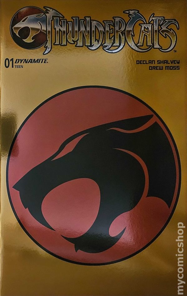 Big Time Collectibles Exclusive Foil Insignia Edition Virgin Cover. Written by Declan Shalvey. Art by Drew Moss. Fleeing through space to escape their dying home world, the ThunderCats were attacked en route by their mortal enemies, the Mutants of Plun-Darr. After diverting their damaged flagship to a planet called Third Earth, the surviving ThunderCats now strive to rebuild their society in harmony with the new world's natives. But the Mutants, determined to possess the ThunderCats' mystical gem, the Eye of Thundera, have tracked them down - and they've also forged an alliance with Mumm-Ra, the devil-priest of Third Earth! Now the ThunderCats, led by an inexperienced Lion-O, must band together as never before to protect their legacy from this combined enemy. But will they be able to withstand the onslaught of Mumm-Ra the Ever-Living, once he sets his eyes upon them? The triple-threat talents (writers, artists, and ThunderCats superfans) of DECLAN SHALVEY and DREW MOSS join forces to bring this exciting new entry in the ThunderCats canon to life! This premier issue features 24 story pages as well as a host of the finest cover artists the galaxy has ever seen, including SHALVEY, DAVID NAKAYAMA, LUCIO PARRILLO, JAE LEE & JUNE CHUNG, and IVAN TAO! 32 pages, full color. Rated T