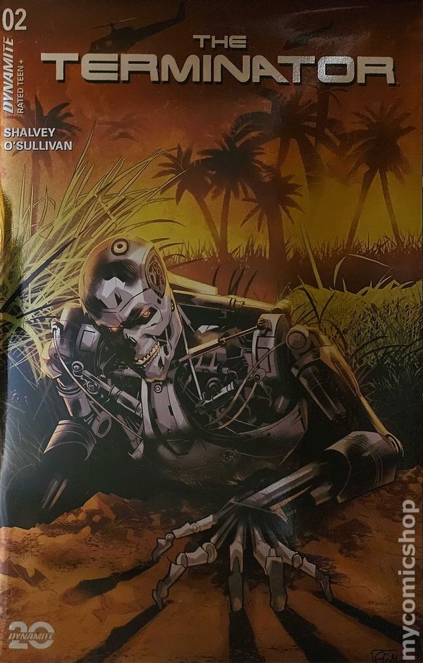Written by Declan Shalvey. Art by David O'Sullivan. Cover by Declan Shalvey. Saigon, 1975-The war is winding down, and American forces are in retreat. One G.I. is enjoying his final leave in South Vietnam's capital city when he is urgently recalled to the front. Back on the line, Private Duggan finds that his sector is being overrun by a mysterious enemy force one that doesn't operate like any Viet Cong or NVA unit he's ever faced. As rumors spread through the ranks about a 'one-man Charlie platoon,' Duggan and his squad suddenly come under murderous fire. Through the thick jungle air the trapped men spy their attacker a lone figure, seemingly impervious to bullets and grenades, completely devoid of fear or hesitation. Implacable. Inescapable. Inhuman. Author DECLAN SHALVEY (ThunderCats, Alien) and artist LUKE SPARROW (Star Trek) get down in the mud with the second issue of their hotly anticipated new Terminator series, opening a groundbreaking new front in the war against the machines and featuring bulletproof covers from SHALVEY, EDWIN GALMON, DREW MOSS, and DAVID COUSENS! 32 pages, full color. Rated T+ Cover price $50.00.