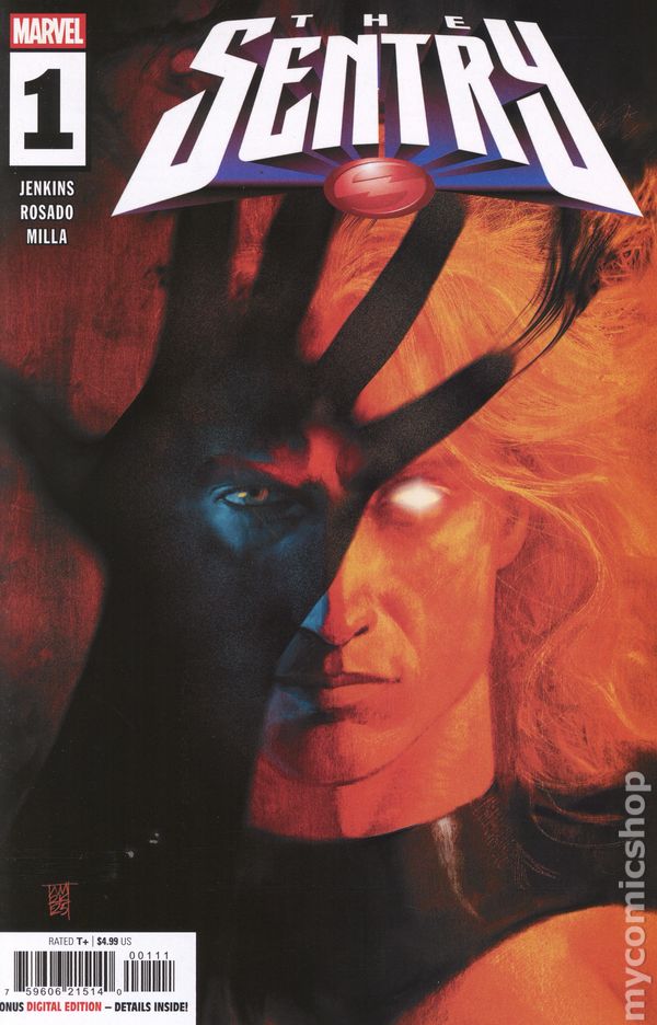 Written by Paul Jenkins. Art by Christian Rosado. Cover by Jae Lee. HE'S BEEN AN AVENGER, A DARK AVENGER AND A THUNDERBOLT! THE SENTRY IS BACK - BUT SO IS THE VOID! From creator Paul Jenkins comes a bold, high-stakes epic about MARVEL'S most dangerous hero - the SENTRY, a man with the power of a million exploding suns- and the dark entity born from his own psyche: the VOID. When the Void resurfaces, threatening to unravel reality itself, the Sentry must battle not only cosmic forces and criminal empires, but the monster within. Guest-starring REED RICHARDS, SPIDER-MAN and the KINGPIN in a tale of impossible choices and devastating consequences. Can the Sentry save everything when the cost might be everything he loves? 32 pages, full color, rated T+. Cover price $4.99.