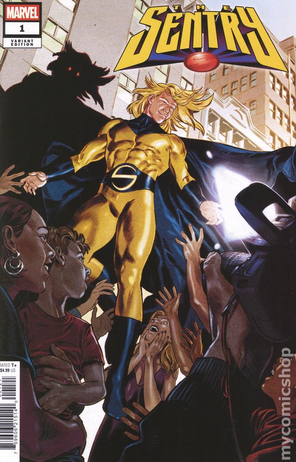 Limited 1 for 100 Retailer Incentive Variant Cover. (W) Paul Jenkins (A) Christian Rosado (CA) Alex Maleev HE'S BEEN AN AVENGER, A DARK AVENGER AND A THUNDERBOLT! THE SENTRY IS BACK - BUT SO IS THE VOID! From creator Paul Jenkins comes a bold, high-stakes epic about MARVEL'S most dangerous hero - the SENTRY, a man with the power of a million exploding suns- and the dark entity born from his own psyche: the VOID. When the Void resurfaces, threatening to unravel reality itself, the Sentry must battle not only cosmic forces and criminal empires, but the monster within. Guest-starring REED RICHARDS, SPIDER-MAN and the KINGPIN in a tale of impossible choices and devastating consequences. Can the Sentry save everything when the cost might be everything he loves? Cover price $4.99.