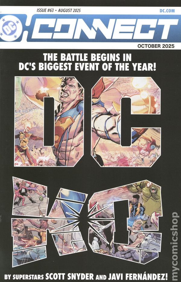 August 2025 DC catalog for October 2025 releases and beyond. Cover by Javi Fernandez (DC K.O.). Highlights from this issue: Batman #2 preview art by Jorge Jimenez; Joker/Harley: Malicious Intent #1 preview art. 56 pages, full color. Cover price $0.25.