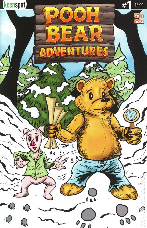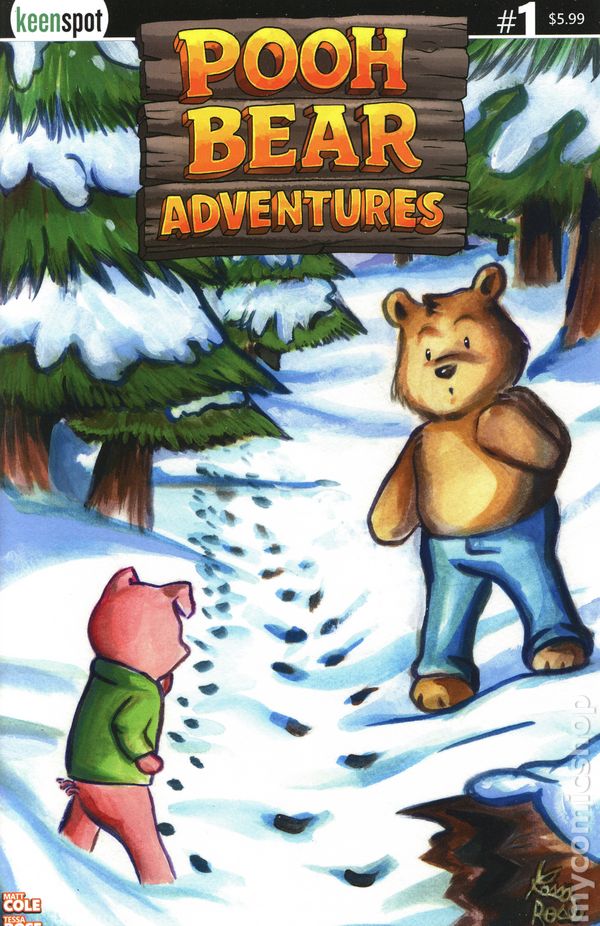 (W) Matt Cole (A) Tessa Rose (CA) Jason Turner [NOTE: All covers are bagged with one of four exclusive Pooh Bear Adventures trading cards!] Celebrate 100 years of Winnie-the-Pooh with new all-ages comic book Pooh Bear Adventures, from the talented team of Ringo-nominated writer Matt Cole and artist/educator Tessa Rose! In "The Great Woozle Chase," Pooh and Piglet find mysterious tracks in the snow leading them on a silly chase through the Hundred Acre Wood, convinced they’re after "Woozles"… maybe. With playful humor and timeless charm, this fresh take honors A.A. Milne’s classic stories while bringing the magic to a new generation. [This is a Keenspot publication.] Cover price $5.99.