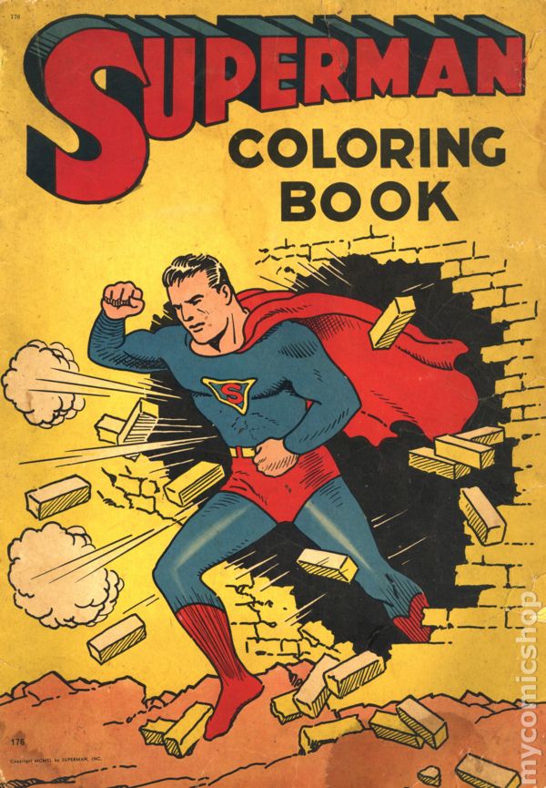 1940's Saalfield Superman Coloring book. Featuring page after page of the Man of Steel's exciting exploits. 11-in. x 15 1/2-in., 50 pages, B&W