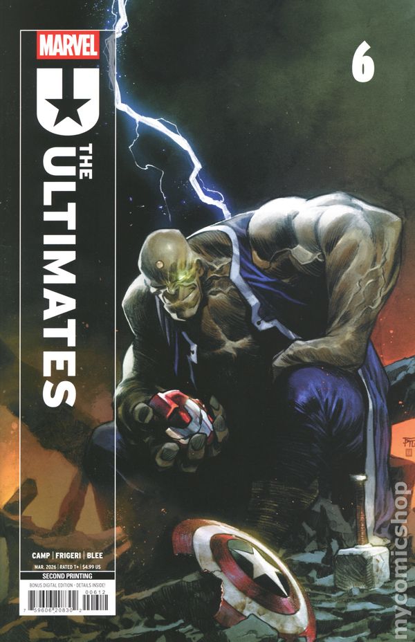 2nd Printing. Written by Deniz Camp. Art by Juan Frigeri. Cover by Dike Ruan. ULTIMATES ASSEMBLE TO TAKE DOWN THE HULK! The entire roster of THE ULTIMATES unites for the first time in this high octane, climactic conclusion of the first arc! Iron Lad has a plan to defeat the Hulk, the most powerful and imposing member of the Maker's Council - but has he gotten his team in over their heads? 32 pages, full color. Rated T+ Cover price $4.99.