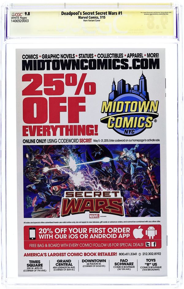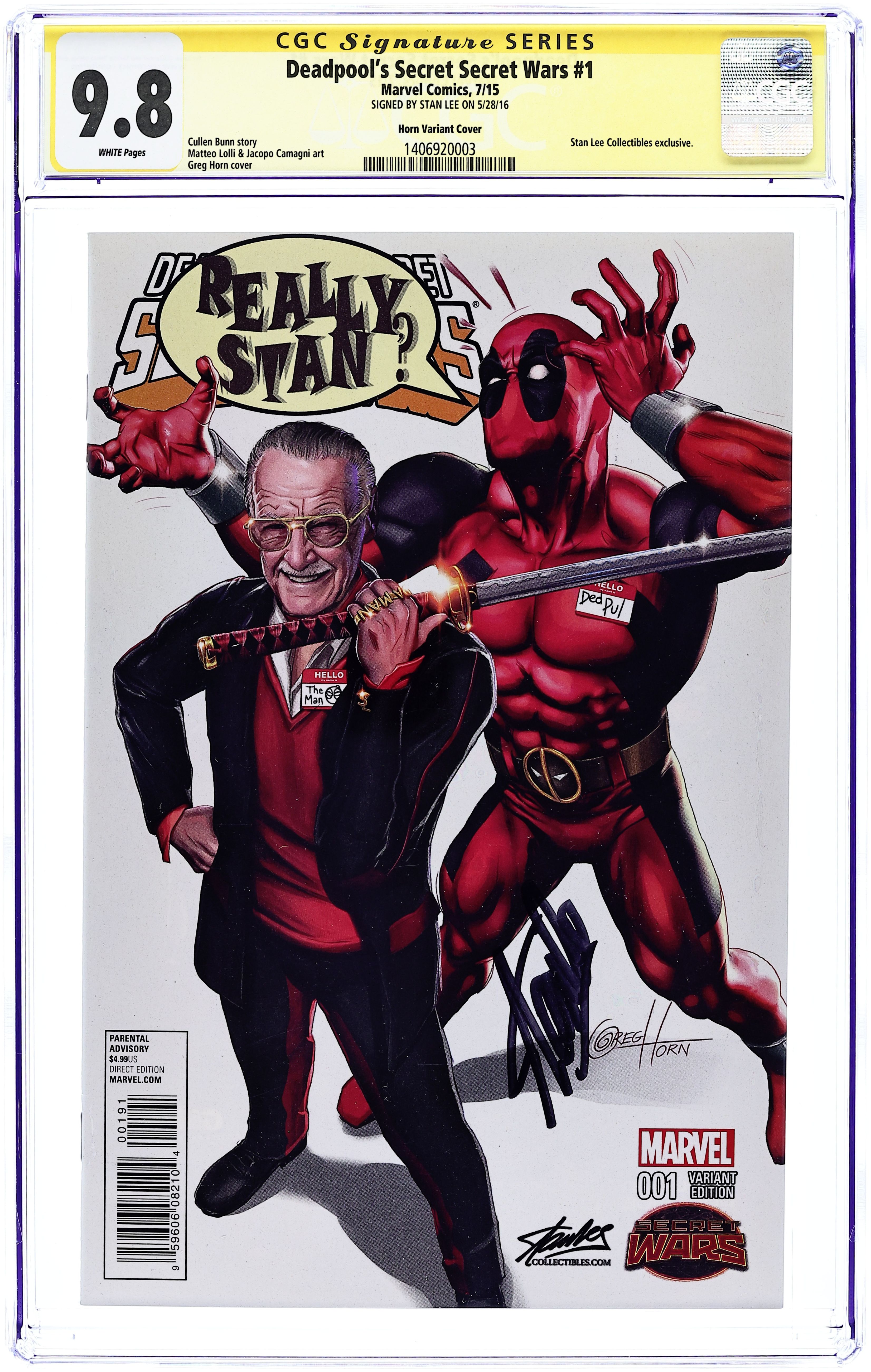 Deadpool's Secret Secret Wars (2015) 1STANLEE.A CGC 9.8 SS Lee