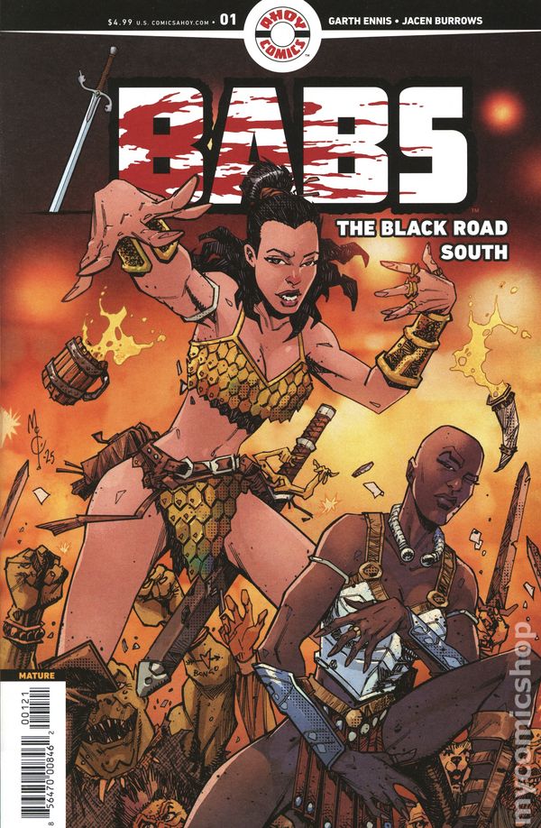 (W) Garth Ennis (A) Jacen Burrows (CA) John McCrea BABS is sharp, subversive, hilarious, and absolutely one of the best comics of 2024,” says CBR—and now the hit Ennis/Burrows sword-and-sorcery satire returns! A day of over-the-top carnage in a gladiator arena leads Babs and her partner-in-barbarism Izzy directly into a strange, unfamiliar, bizarre situation: they actually have money! That’s good, right? Wrong—because it’s about to lead them down a dark, horrific road to the devastated wasteland of Mordynn. Cover price $4.99.