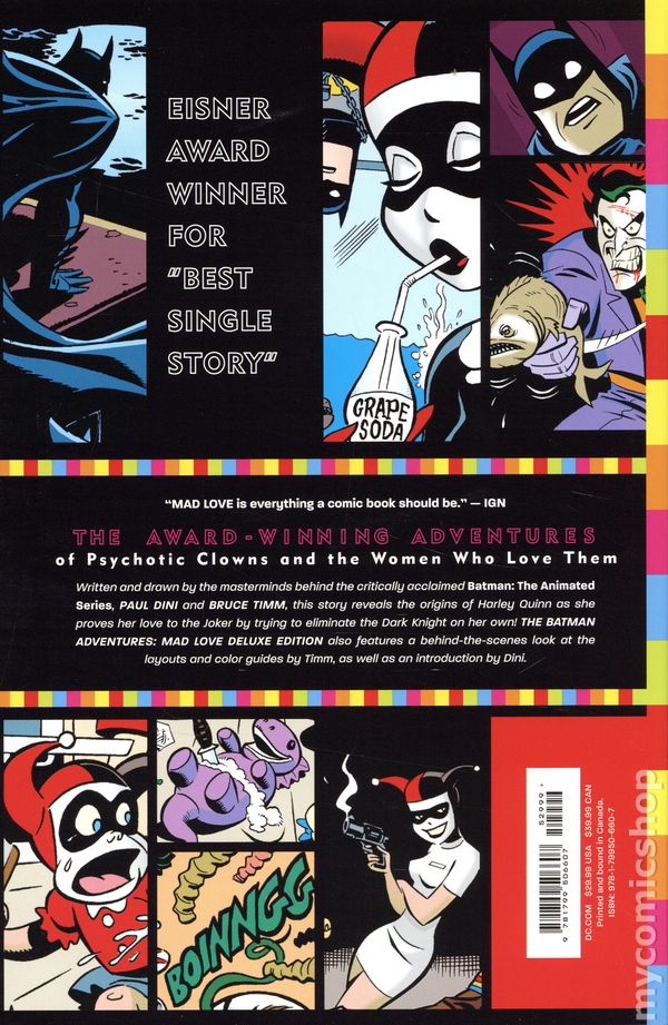 2nd Edition - 1st printing. Written by Bruce Timm and Paul Dini. Art and cover by Bruce Timm. THE EISNER AWARD-WINNING ORIGIN OF HARLEY QUINN! Written and drawn by the masterminds behind the critically acclaimed Batman: The Animated Series, Paul Dini and Bruce Timm, this story reveals the origins of Harley Quinn as she proves her love to The Joker by trying to eliminate the Dark Knight on her own! Batman Adventures: Mad Love Deluxe Edition (2026 Edition) also features a behind-the-scenes look at the layouts and color guides by Timm as well as an introduction by Dini. Hardcover, 7 1/2-in. x 11-in., 144 pages, full color. Cover price $29.99.
