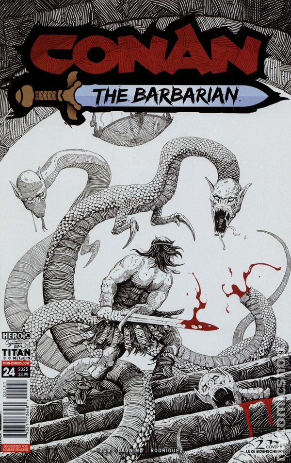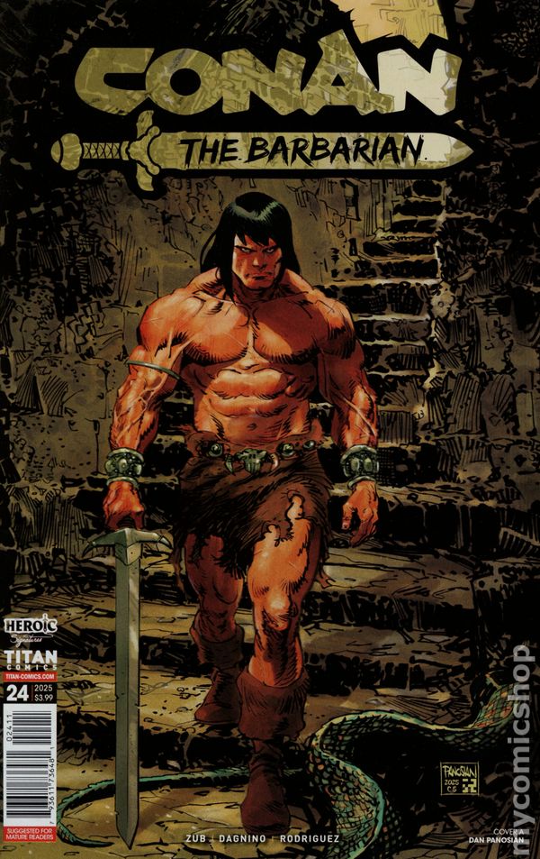 Written by Jim Zub. Art by Fernando Dagnino. Cover by Dan Panosian. WINNER OF 'BEST NEW COMIC SERIES' - TRIPWIRE 2024 AWARDS The Great Serpents influence twists and turns, pulling Conan into their deadly coils as the Cimmerian and his allies are lured into Stygia…What they find on this journey will make their blood run cold and set the stage for a conflict beyond their wildest imagination! 28 pages, full color. Rated M Cover price $3.99.