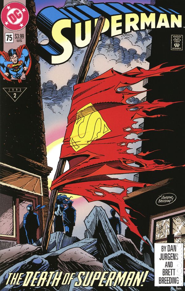 (W) Dan Jurgens (A) Dan Jurgens, Brett Breeding (CA) Dan Jurgens THE DEATH OF SUPERMAN! The creature known only as Doomsday has carved a bloody swath of destruction across the country, and even the Justice League of America has fallen before its unrelenting fury. Now Superman must make a desperate final stand to stop the most powerful foe he has ever faced before all of Metropolis falls as well. This is it--the death of Superman! Cover price $3.99.