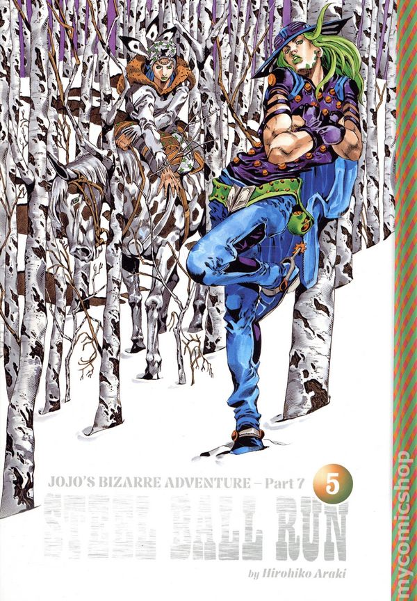 Volume 5 - 1st printing. Story and art by Hirohiko Araki. Translated by Nathan Collins. A multigenerational tale of the heroic Joestar family and their never-ending battle against evil! The legendary Shonen Jump series is now available in deluxe hardcover editions featuring color pages! JoJos Bizarre Adventure is a groundbreaking manga famous for its outlandish characters, wild humor, and frenetic battles. As Gyro and Johnny battle Dio for the fourth-stage victory in Kansas City, the president of the United States awaits an important message regarding the next part of the Holy Corpseābut the message is quickly stolen by none other than Lucy Steel! Desperate to protect her husband, Lucy must now figure out who she can trust in order to keep the message out of the presidents clutches before its too late. Hardcover, 6-in. x 8 1/2-in., 378 pages, PC/PB&W. Parental Advisory Cover price $25.00.