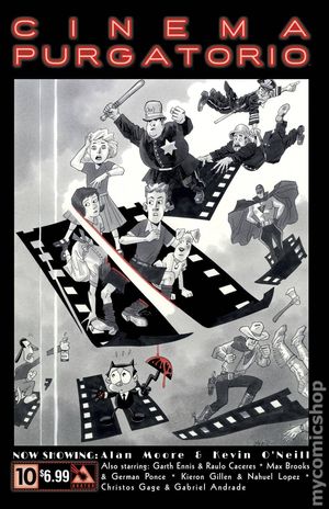 (W) Alan Moore & Various (A) Kevin O'Neil & Various (CA) Kevin O'Neil From the Civil War re-imagined with giant insects, to the dystopian giant monsters of the Vast. Seduced by the cute, yet overwhelmed, Pru or guffawing at the madcap Modded. Or just enthralled by the tapestry of cinematic history upon which Alan Moore is weaving another masterful tale, the finest anthology in history continues. Join a master class of horror creators as they spin stories to terrify and delight. Now showing: Cinema Purgatorio by Alan Moore and Kevin O'Neill, A More Perfect Union by Max Brooks and Gabriel Andrade, Code Pru by Garth Ennis and Raulo Caceres, Modded by Kieron Gillen and Nahuel Lopez, and The Vast by Christos Gage and Gabriel Andrade. Each story has its own cover by the series artist and there is also an Ancient Tome Premium edition limited to 1000 copies. Cover price $6.99.