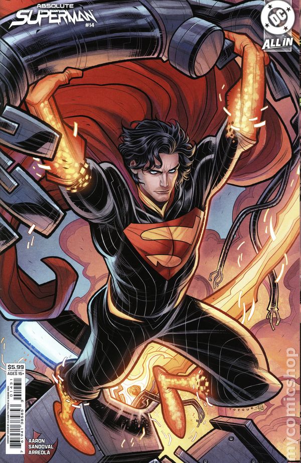 Limited 1 for 25 Retailer Incentive Variant Cover. 2nd Printing. Cover D. Limited 1 for 25 Retailer Incentive Variant Cover. Written by Jason Aaron. Art by Rafa Sandoval. Cover by Rafa Sandoval. SUPERSTARS JASON AARON AND RAFA SANDOVAL UNLEASH A SHOCKING NEW TAKE ON THE LAST SON OF KRYPTON! Without the fortress...without the family...without a home...what's left is the Absolute Man of Steel! 48 pages, full color. Rated T+ Cover price $4.99.
