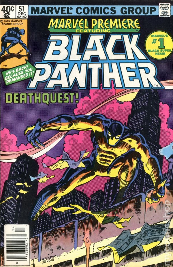 Newsstand Edition. Cover pencils by Al Milgrom, inks by Klaus Janson. The Killing of Windeagle!, script by Ed Hannigan, pencils by Jerry Bingham, inks by Gene Day; Windeagle attacks T'Challa at the Wakandan consulate in New York City; Following the attack, T'Challa begins to recall his prior investigation of the death of Monica Lynne's sister in Georgia which somehow had been erased from his memory; Windeagle, an agent of the Dragon Circle cult somehow involved in the death, renews his attack on the Black Panther, but is shot and killed by an unknown assailant during the battle. Continues "The Panther vs. the Klan" storyline that ran in Jungle Action #19-24 (January 1976-November 1976) and continued in Black Panther #14 & 15. 36 pgs. $0.40. Cover price $0.40.