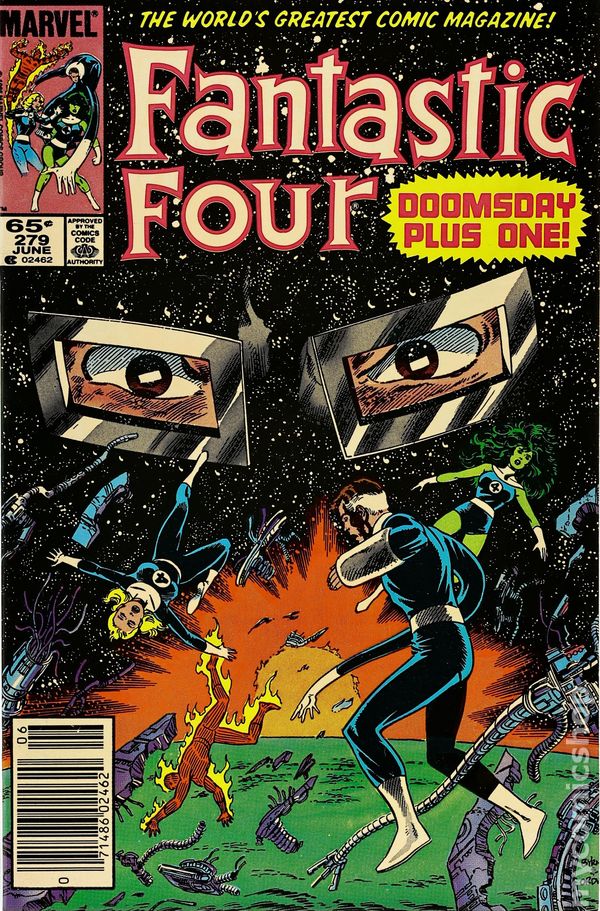 Newsstand Edition. "Crack of Doom!" Part 2 of 2. Guest-starring Wyatt Wingfoot. Story by John Byrne. Art by John Byrne and Jerry Ordway. Cover by John Byrne. Doctor Doom has done the unthinkable! He has launched the Baxter Building into outer space and destroyed the Fantastic Four's headquarters leaving the heroes exposed to the harsh vacuum of space. Even if the FF can somehow survive this devastating attack, can they hope to defeat this new, even deadlier, Doctor Doom? 35 pgs. Cover price $0.65.