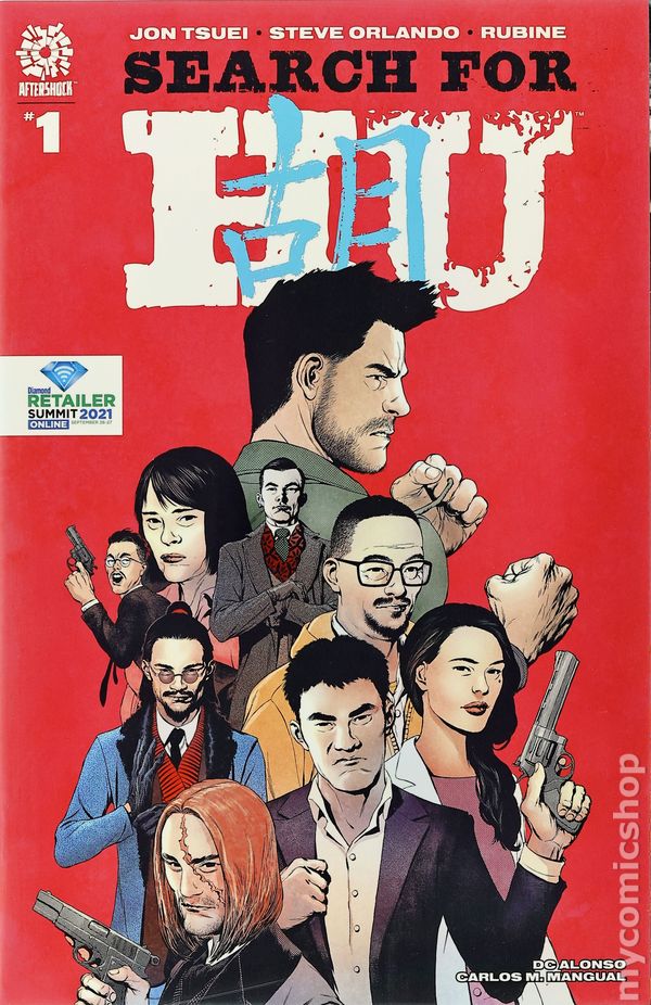 Diamond Retailer Summit Exclusive Variant Cover by Andy Clarke. Written by Steve Orlando, Jon Tsuei. Art by Rubine. Aaron Tse lives for his family, and if he's not careful, he'll die for its secrets. When he left the military, Aaron Tse's first thought was providing for his aging parents. His parents' bar is experiencing hard times, and one night it's shot to hell, with his parents critically injured in the attack. But this was no ordinary robbery - Aaron's mother reveals that she fled China to escape a blood feud between the Jewish and Chinese sides of her family…both of which are powerful organized crime families. Peace existed between these two families - the Hu and the Margolis - but now it's been broken, and Aaron must protect his parents from further violence. Aaron hops a plane to the homeland he never intended to explore, on a path to revenge he never wanted to walk. Written by Jon Tsuei (Sera and the Royal Stars, RunLoveKill) and Steve Orlando (Martian Man-hunter, Wonder Woman, KILL A MAN, PROJECT PATRON) and drawn by artist sensation Rubine, SEARCH FOR HU is a fast-paced, action-packed exploration of complex cultural histories, powered by a bloody family feud. 32 pages, full color.