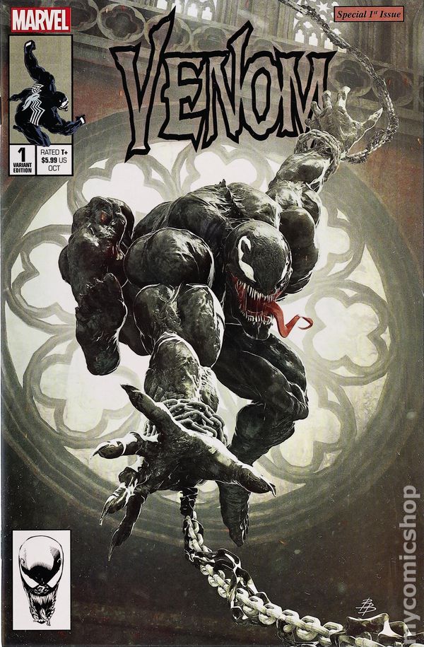 Frankie's Comics Exclusive Variant Cover by Bjorn Barends. Written by Al Ewing and Ram V. Art by Bryan Hitch. AN EPIC NEW ERA FOR THE SINISTER SYMBIOTE STARTS HERE! Hot off the heels of VENOM #200 and EXTREME CARNAGE, we're closing out 2021 with one of the most ambitious books in symbiote history - an all-new VENOM from some of comics' greatest talents! Marvel mainstay AL EWING, who himself has just ended a character-redefining run on IMMORTAL HULK, is being joined by RAM V, a horror maestro all his own, to craft a mind-bending and gut-wrenching tale of symbiosis the likes of which the Marvel Universe has never seen! AS IF THAT WASN'T ENOUGH, they've been joined by industry legend BRYAN HITCH, who is leaving IT ALL ON THE PAGE! We haven't led you astray yet, have we? So trust us when we tell you that you have NEVER seen a VENOM like this! 52 pages, full color. RATED T+