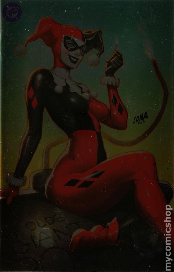 Unknown Comics Exclusive Foil Edition Virgin Cover by David Nakayama. Written by Elliott Kalan. Art by Mindy Lee. BEEP BEEP! OUTTA THE WAY! HARLEY'S DRIVIN' HERE! Laddies and Gentlegirls, are your engines burning for violence, malfeasance, and mayhammery? Look no further than this issue of Harley Quinn! I, Imperator Harleyiosa, acting as the agent of the Council of Aggrieved Local Retailers of Throatcutter Hill, have placed an embargo on all internet purchases in our disgusting little corner of Gotham City henceforth. No more will convenient internet retailers flood our streets with their express-mail trucks and fill our recycling bins with empty cardboard boxes! Embargoed! Watch out, 'cause I got some serious road rage I can't wait to unleash! Set wheel in here, and I'm gonna blow up your truck! 32 pages, full color. Rated T+
